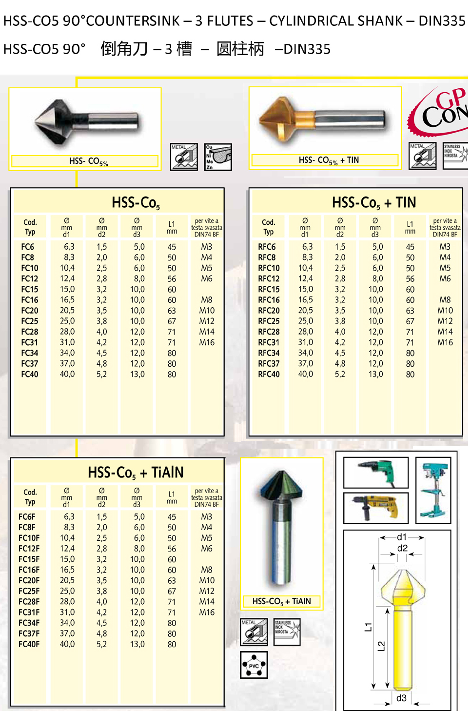 产品名称:高速钢&CO5圆柱柄锪钻-DIN335